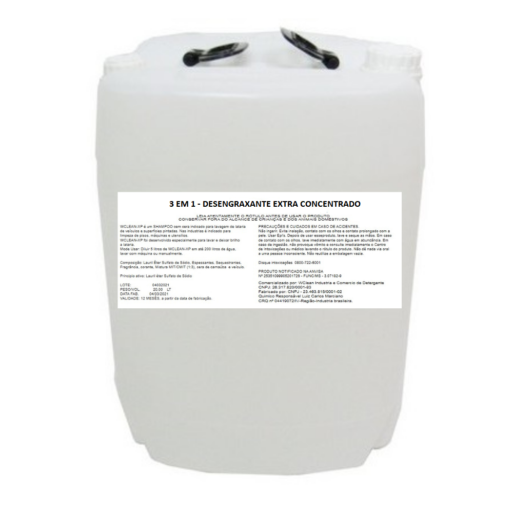 TRIPLO EM UM é um produto detergente desengraxante alcalino extra concentrado é um produto completo que não tem cheiro forte e que substitui o ativado e solupan, ele foi especialmente desenvolvido para evitar a lavagem com produtos prejudiciais a saúde e para fazer uma lavagem rápida, ágil e com qualidade. Utilizado para lavagem de chassi de veículos, máquinários e pátios sujos de graxas e óleos de veículos. Aplicação com pulverizador, enxaguar bem e não deixar secar sobre a lataria.