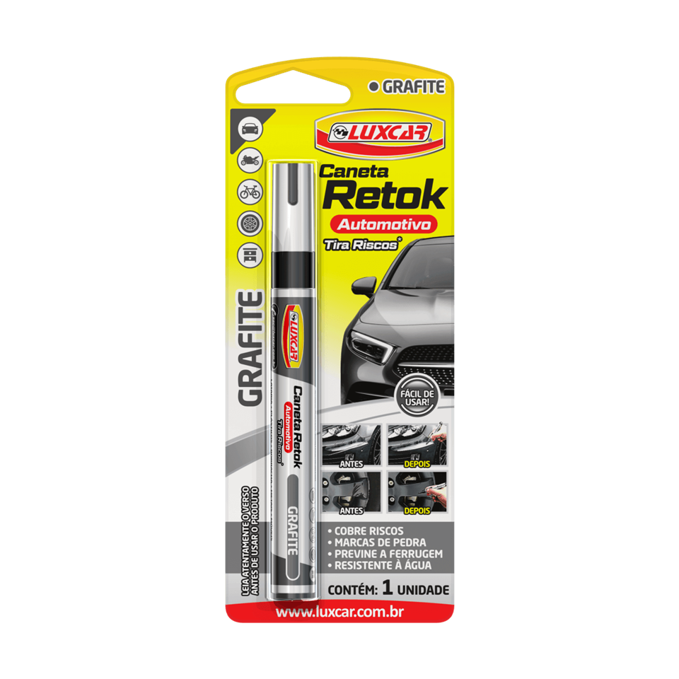A Caneta Retok Tira Riscos Luxcar Traz a qualidade em seus marcadores permanentes que têm o brilho da tinta automotiva envernizada. Para disfarçar riscos, marcas de pedras, manchas ou falta de tinta nas superfícies do seu carro, moto, bicicleta ou qualquer outro veículo. Mas não é só isso. As canetas Retok Tira Riscos Luxcar também podem ser usadas para pintar pneus, restaurar móveis, rodas, placas, personalizar detalhes no painel ou em aparelhos eletrônicos. As possibilidades são infinitas!
