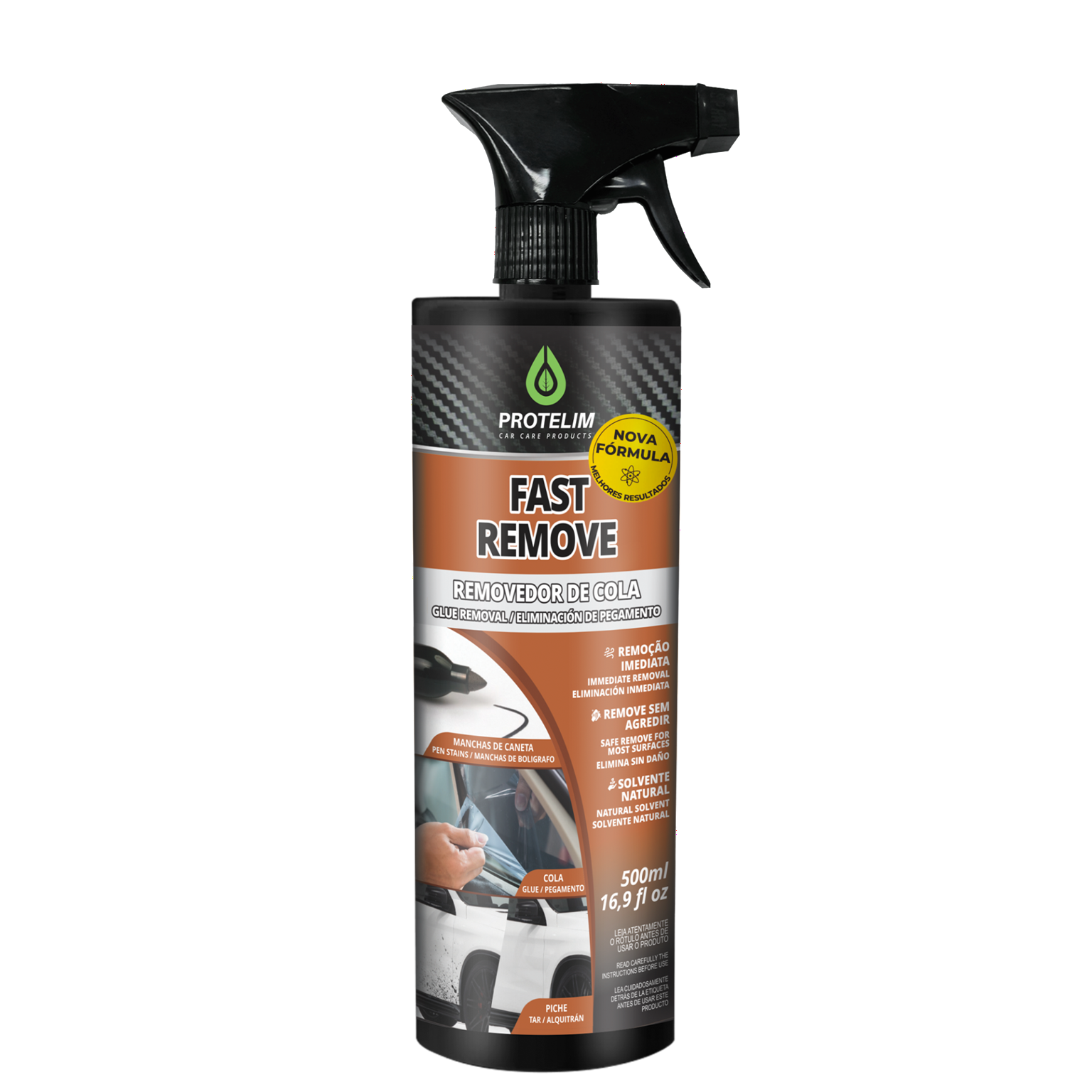 FAST REMOVE NOVA FÓRMULA é um produto desenvolvido com matérias-primas de última geração, proporcionando uma qualidade inovadora como REMOVEDOR DE COLA INSULFILM, COLA DE ADESIVOS, PICHES, TINTAS DE CANETA, CHICLETES, etc. Também pode ser aplicado em superfícies como VIDRO, METAIS e FÓRMICAS, sem deixar manchas.