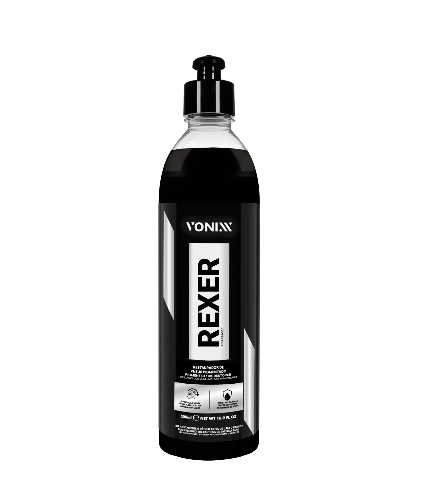 REXER é um restaurador de pneus pigmentado e de alta durabilidade, desenvolvido para proporcionar um acabamento intenso, uniforme e de longa duração com apenas uma única aplicação. Sua fórmula avançada cria um filme seco, brilhante e altamente resistente à água, garantindo proteção superior contra agentes externos e mantendo o visual renovado dos pneus por muito mais tempo.